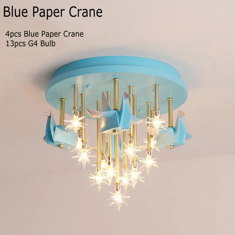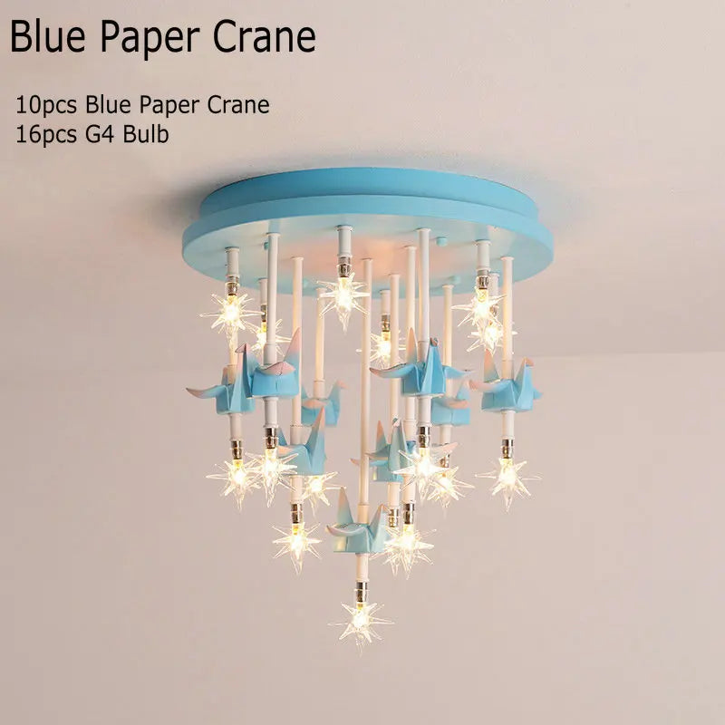 Introducing the Afralia™ Kids Resin Horse Paper Crane Ceiling Light, a stunning addition to any child's bedroom. This beautifully designed ceiling light features a paper crane and horse shape in blue and pink colors, creating a whimsical and enchanting atmosphere.