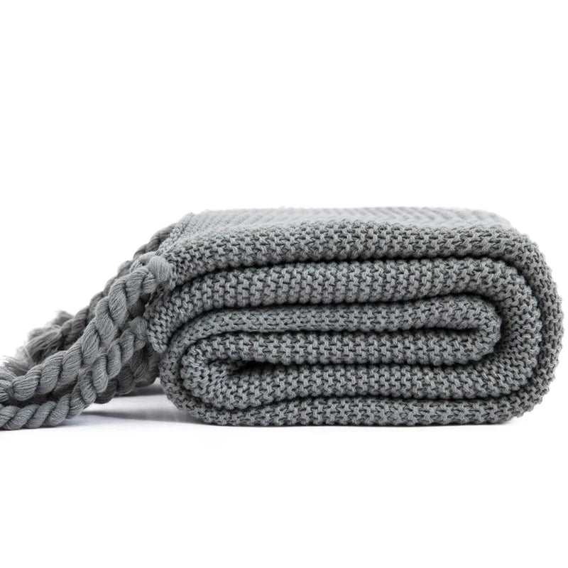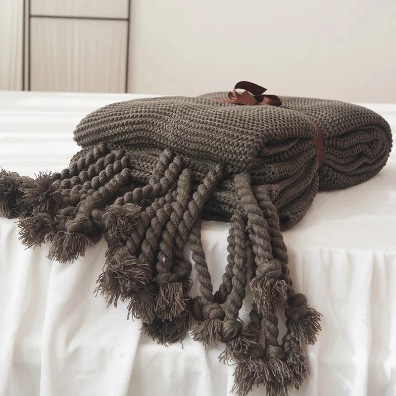 Crafted with a beautiful geometric pattern and featuring elegant tassel details, this blanket is both stylish and versatile. The Grade A quality ensures durability and longevity, while the knitted technics and plain dyed pattern add a touch of sophistication to any space.
