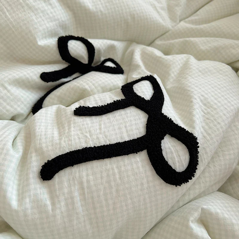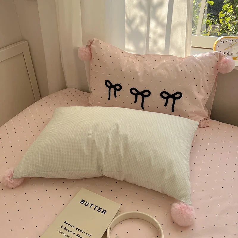 Introducing the Afralia™ Korean Princess Bow Lattice Pompom Bedding Set – fit for royalty and designed to bring a touch of elegance to your bedroom.