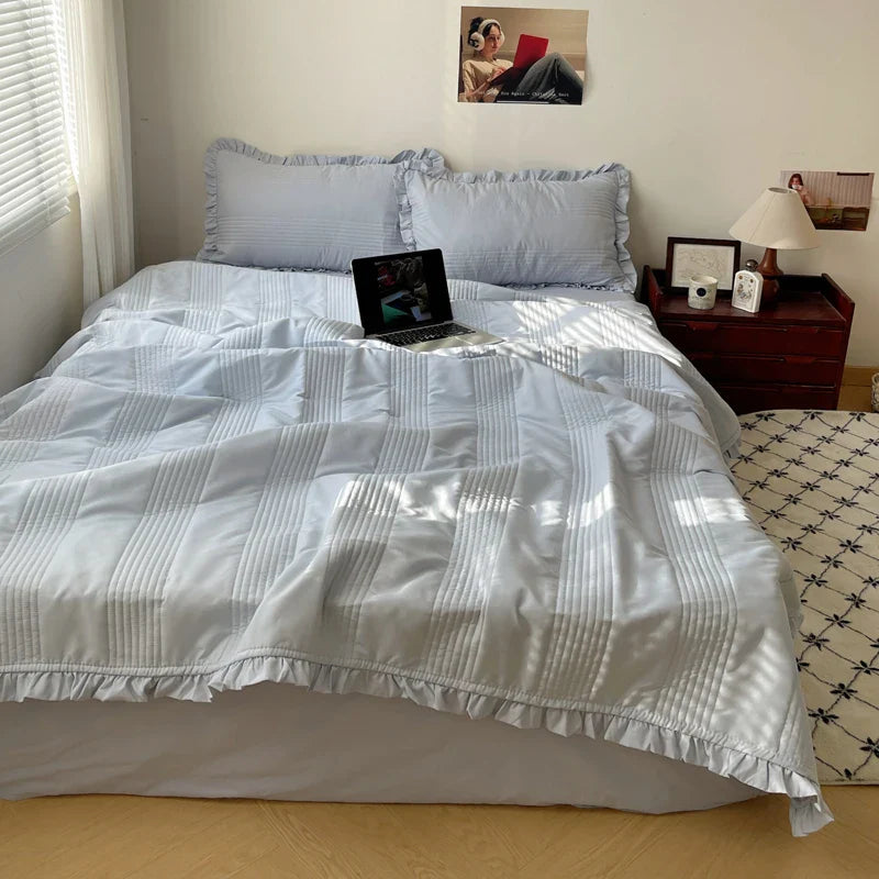 Afralia™ Korean Princess Lace Ruffles Summer Quilt Bedspread - 3Pc Bedding Set