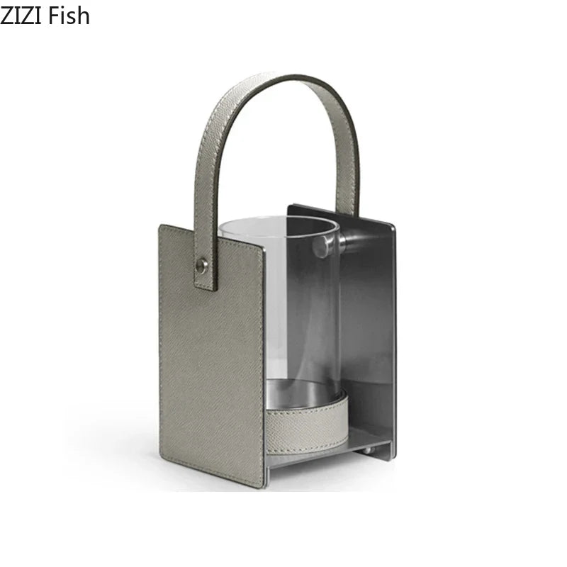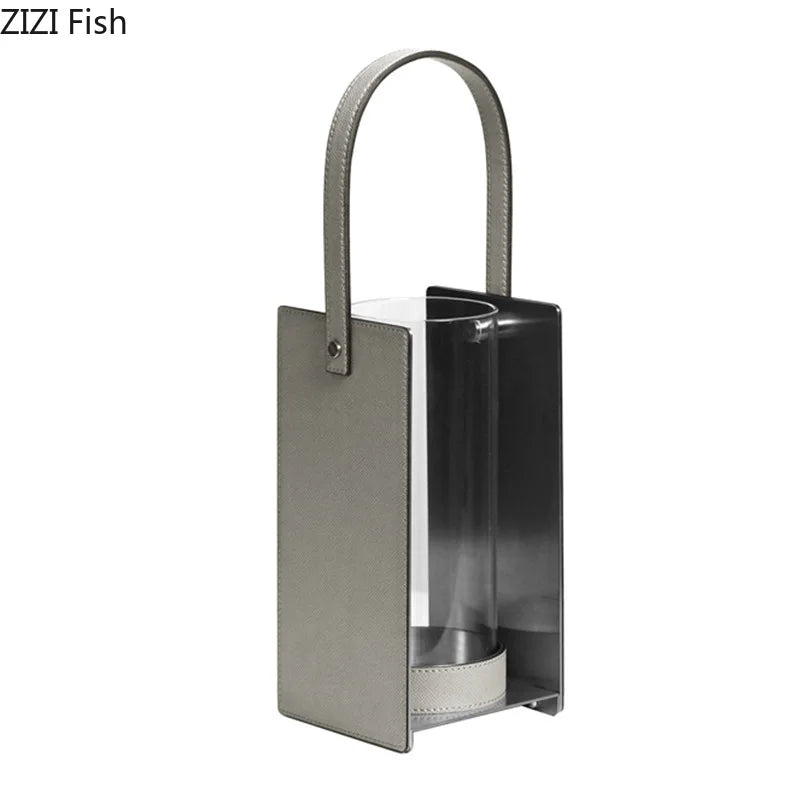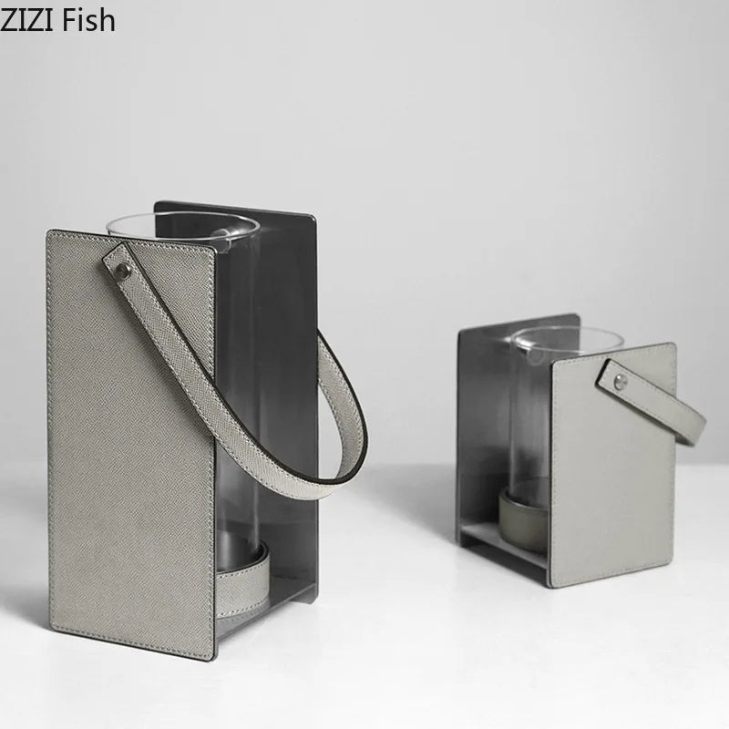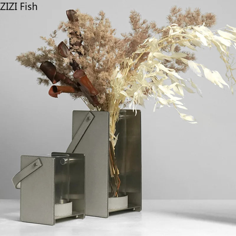 Afralia™ Leather Glass Vase Plant Pot Artificial Flowers Floral Room Decor