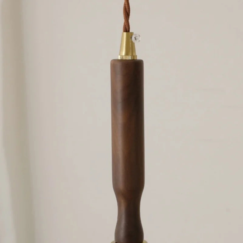 Illuminate your space with the warm glow of this pendant light, featuring a stunning amber glass shade and a walnut wood bar for a touch of elegance. The adjustable wire length allows you to customize the hanging height to suit your preferences.