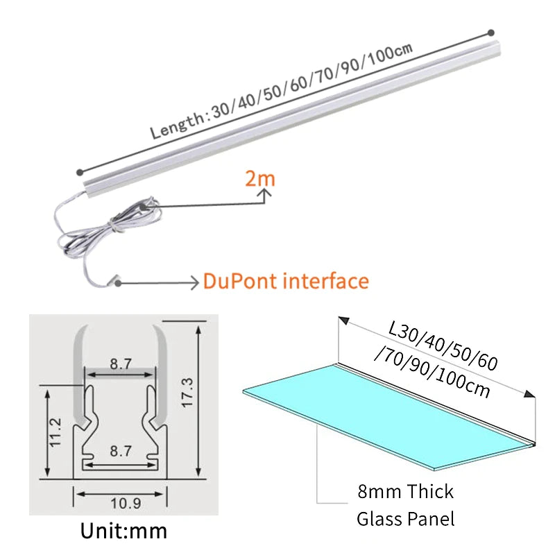Experience the elevated lighting solutions with Afralia™ LED Cabinet Bar Lamp for 8mm Glass Panel Bookshelf Strip Light. This sophisticated lighting fixture is designed to elevate the ambiance of your space while providing ample illumination for your cabinet, bookshelf, or display case.