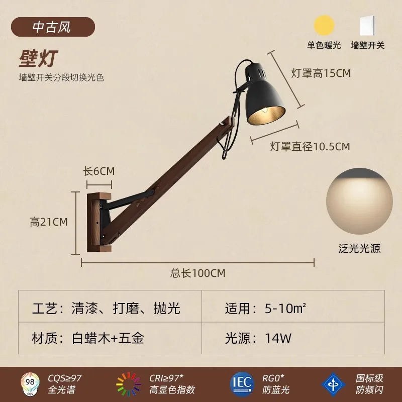 Designed with an E27 base type, this wall lamp is equipped with LED bulbs to provide efficient and long-lasting lighting. The Japanese Medieval Long Pole Swing Arm design adds a unique touch to your decor, while the available colors in black, brown, and khaki ensure versatile styling options to complement your space.