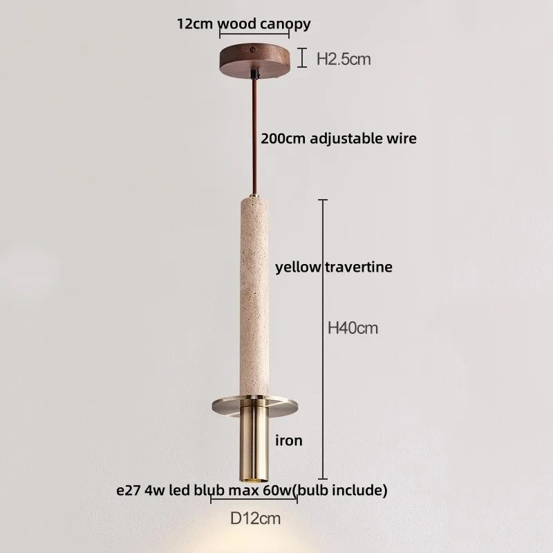 Afralia™ LED Pendant Lights Bar Decor Yellow Travertine Stone Wood Hang Lamp