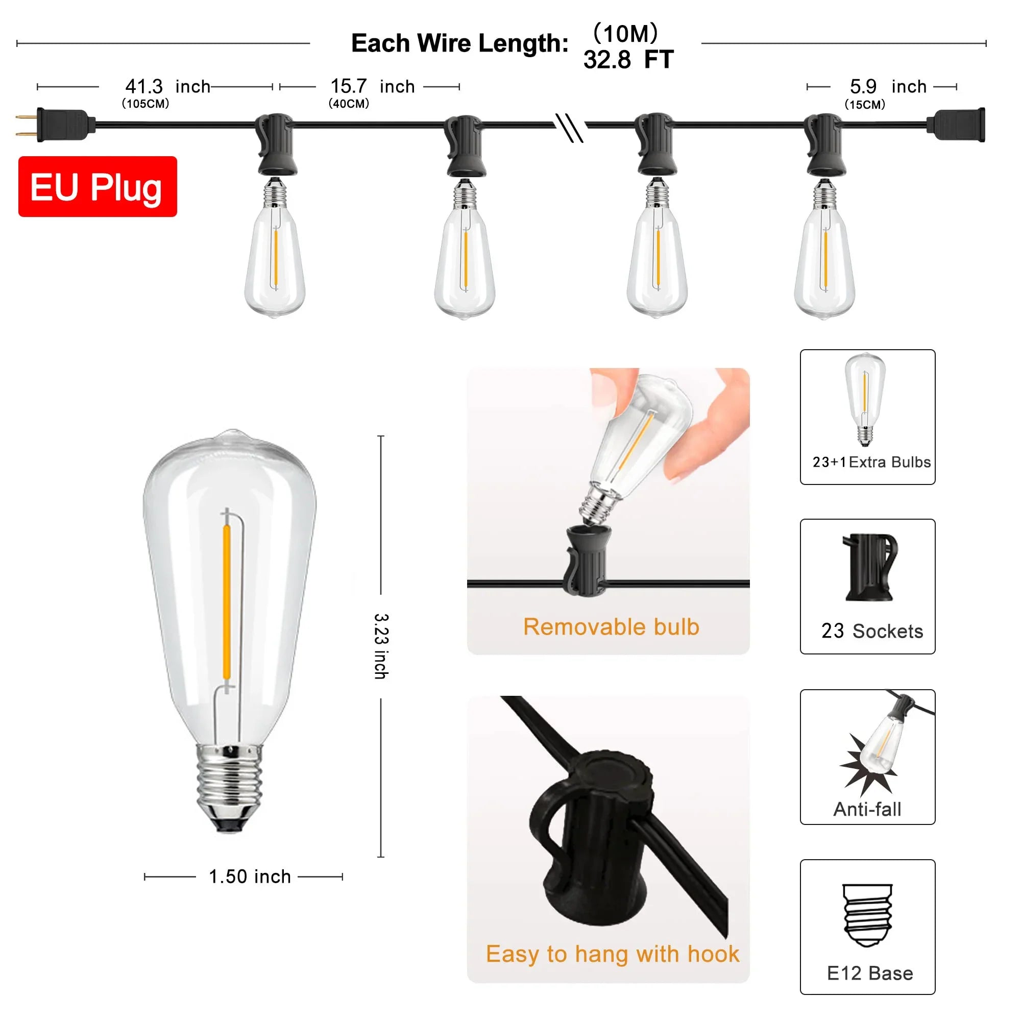 Afralia™ LED String Lights Outdoor Fairy Backyard Patio Decor Waterproof IP44