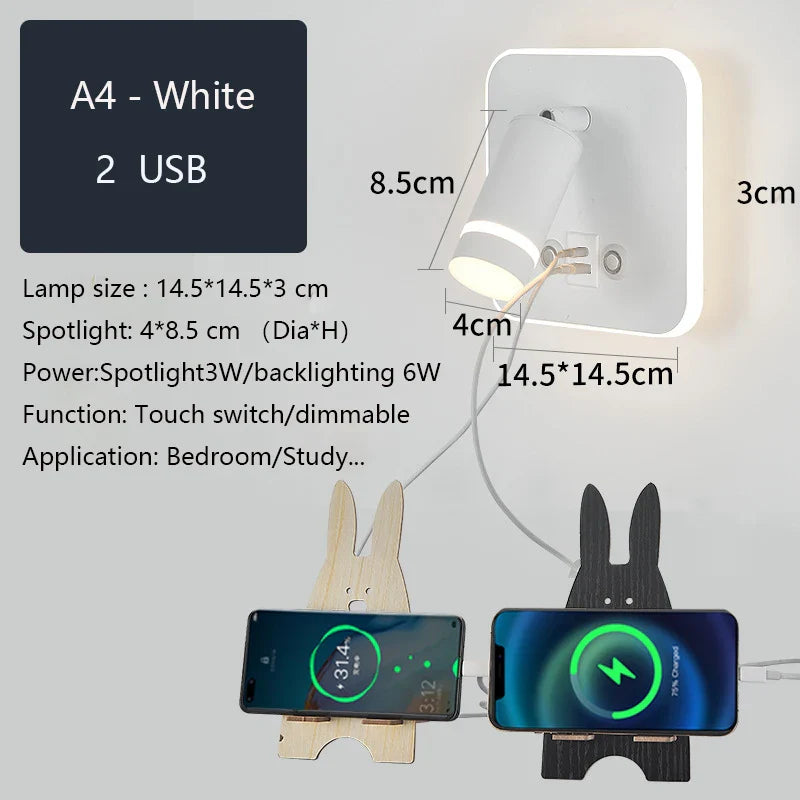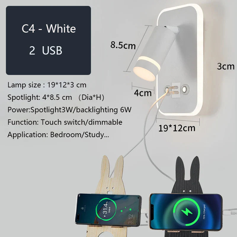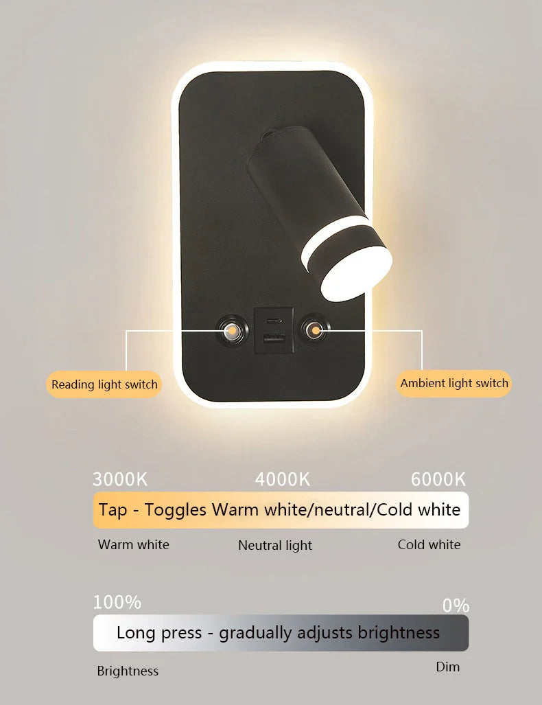 Afralia™ LED Wall Sconce Lamp Touch Switch USB Bedside Reading Light Tri-color Diammable