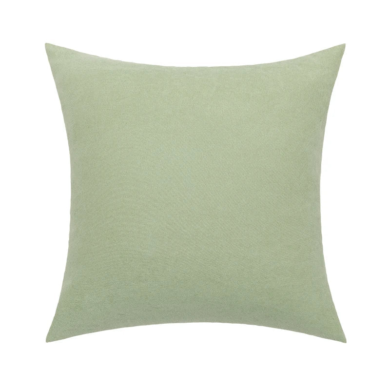 Afralia™ Linen Embroidery Leaves Cushion Cover 45x45cm Beige Green Aesthetic Throw Pillow