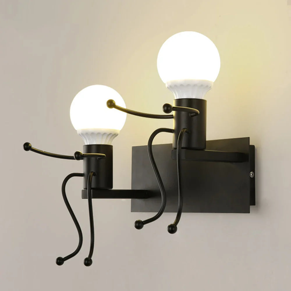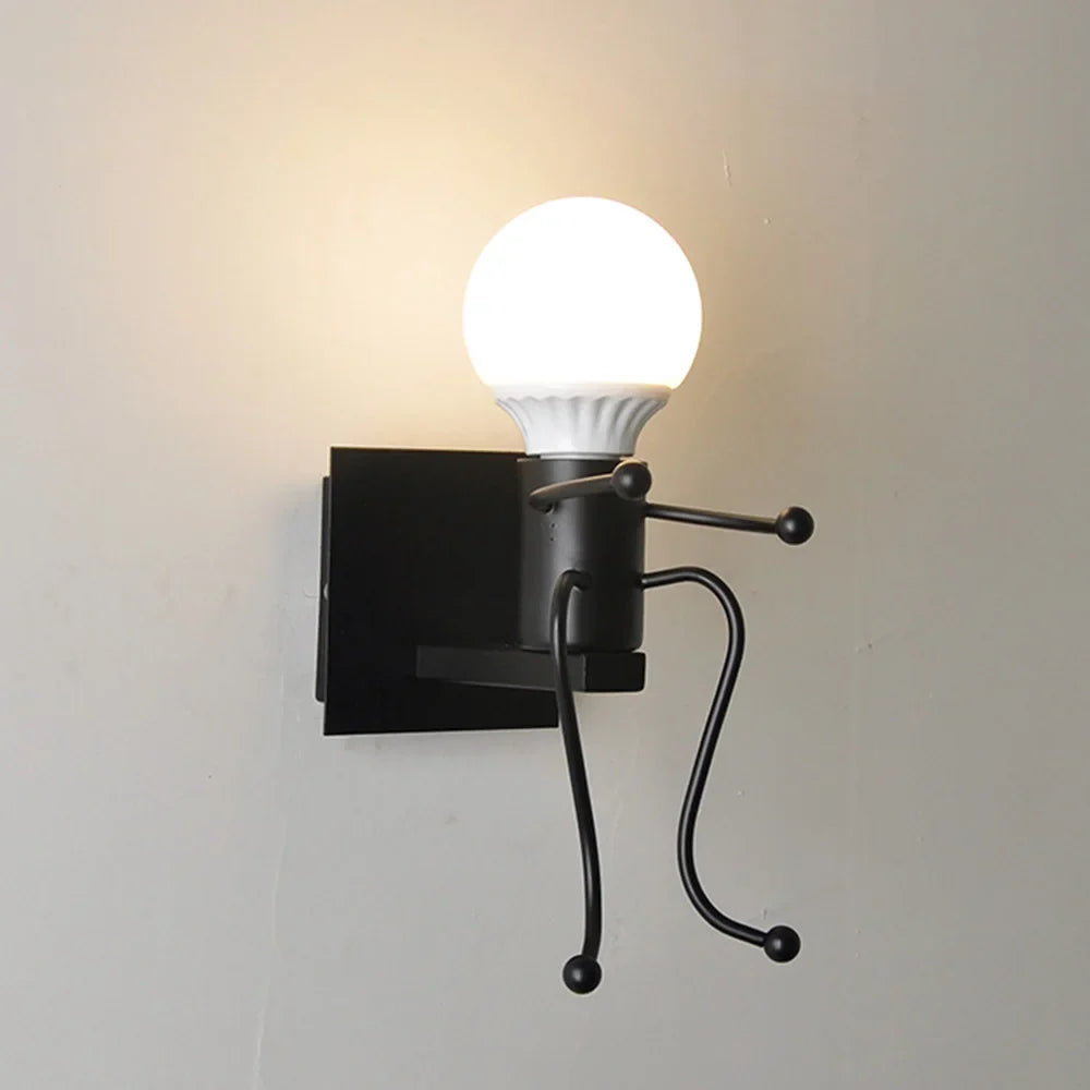 Constructed from sturdy metal, the Afralia™ Little Iron Man Cartoon Wall Sconce features an upward shade direction for a unique and eye-catching look. The painted finish in black and white colors adds a modern touch to any room.