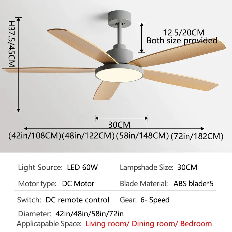Afralia™ Living Bedroom Ceiling Fan With Light, Remote Control, 48-60 Inch, LED, DC, 220V