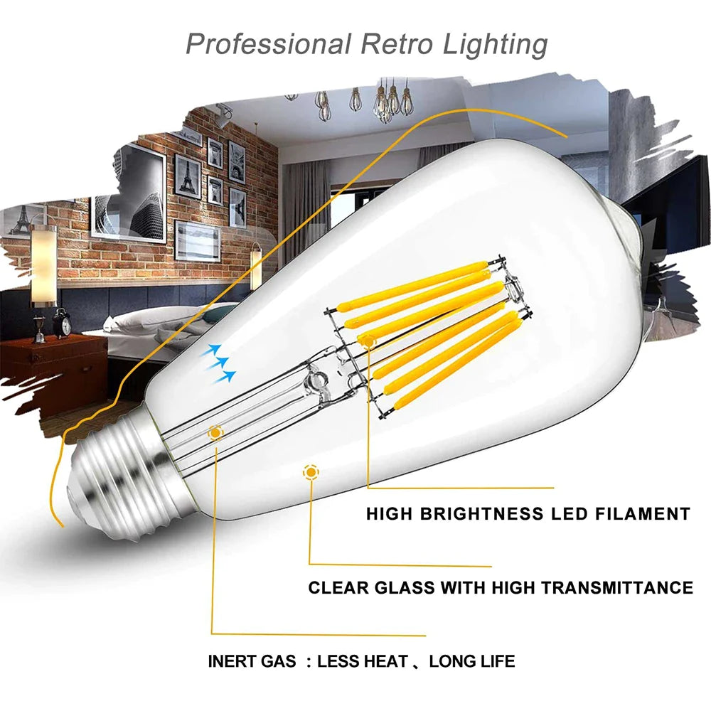 Designed in a stylish ST58 shape with an E26/E27 base, this LED filament bulb offers both warm white (2700-3500K) and neutral white (4500K) color temperatures to suit your preference. The low voltage operation of DC 12V/24V ensures energy efficiency without compromising on brightness.