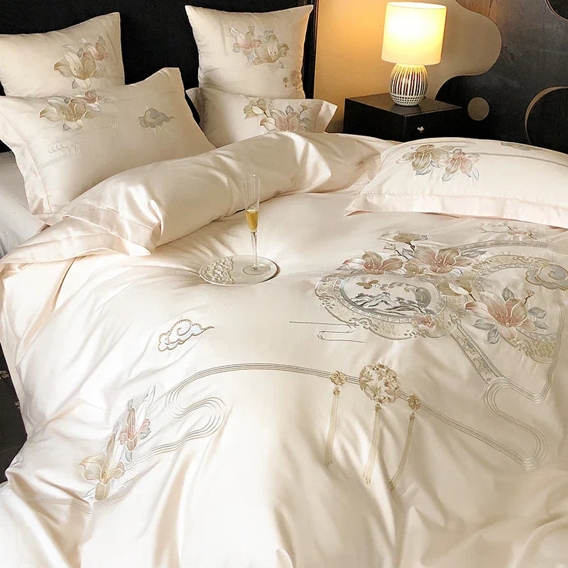 Afralia™ Luxe Floral Bird Embroidery 1000TC Egyptian Cotton Bedding Set