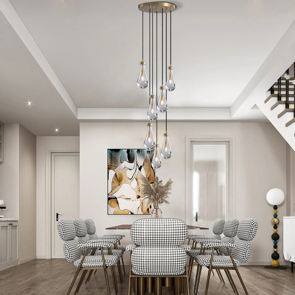 Introducing the Afralia™ Luxury Brass Raindrop Glass Chandelier for High Ceilings, a stunning addition to your modern space. Elevate your home with this exquisite piece that exudes elegance and sophistication.