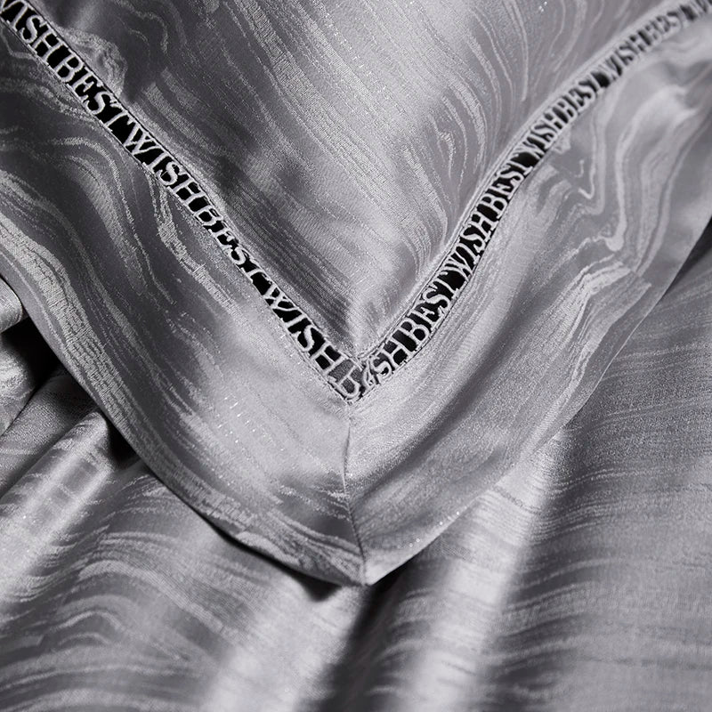 Experience the exquisite comfort of 1000TC Lyocell Cotton fabric, carefully embroidered with a beautiful jacquard pattern. The set includes a duvet cover, 2 pillowcases, and 1 sheet, providing everything you need for a restful night's sleep.