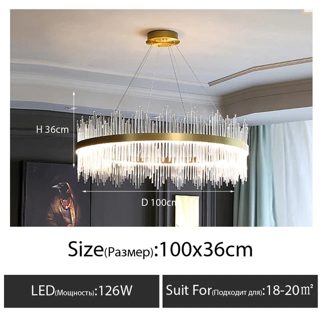 Immerse yourself in the luxurious glow of the Afralia™ Luxury Crystal LED Chandelier, a modern and dimmable pendant light designed for the most elegant of spaces. This exquisite lighting fixture exudes sophistication and style, elevating any bedroom, living room, or dining room with its timeless beauty.
