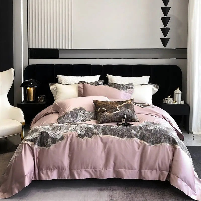 Crafted with a luxurious 1200 thread count, this bedding set exudes opulence. The modern art embroidered design adds a touch of sophistication to your sleeping space.