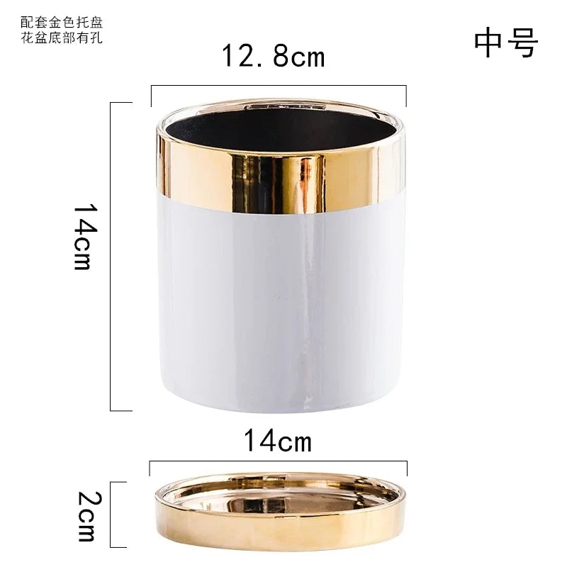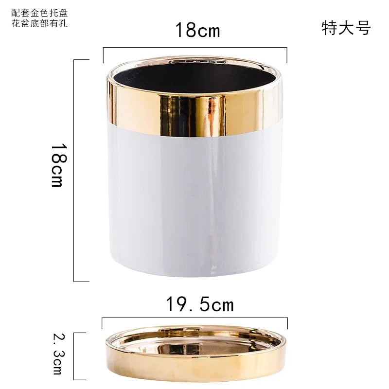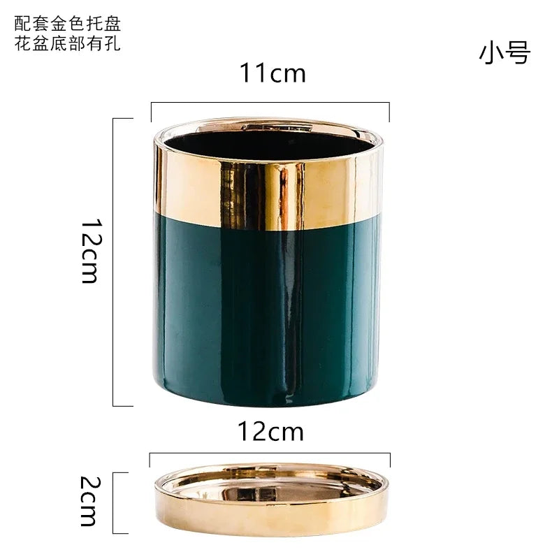Afralia™ Luxury Emerald Ceramic Flowerpot with Gilded Border for Home and Office Decor