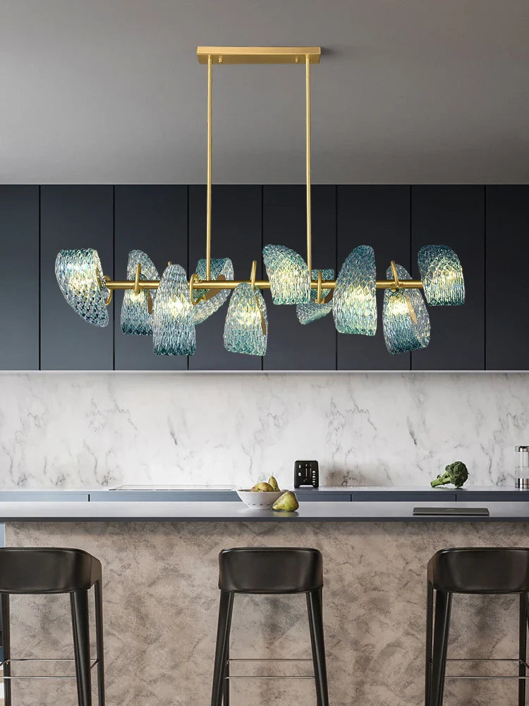 Enhance your home decor with the Afralia™ Luxury Glass Decorated Yellow Copper Blue Chandelier, a masterpiece of craftsmanship and design. Elevate your space with this exquisite lighting fixture that combines style and functionality effortlessly.