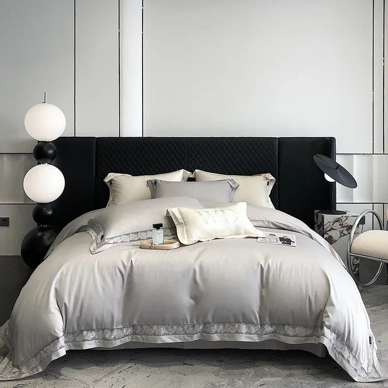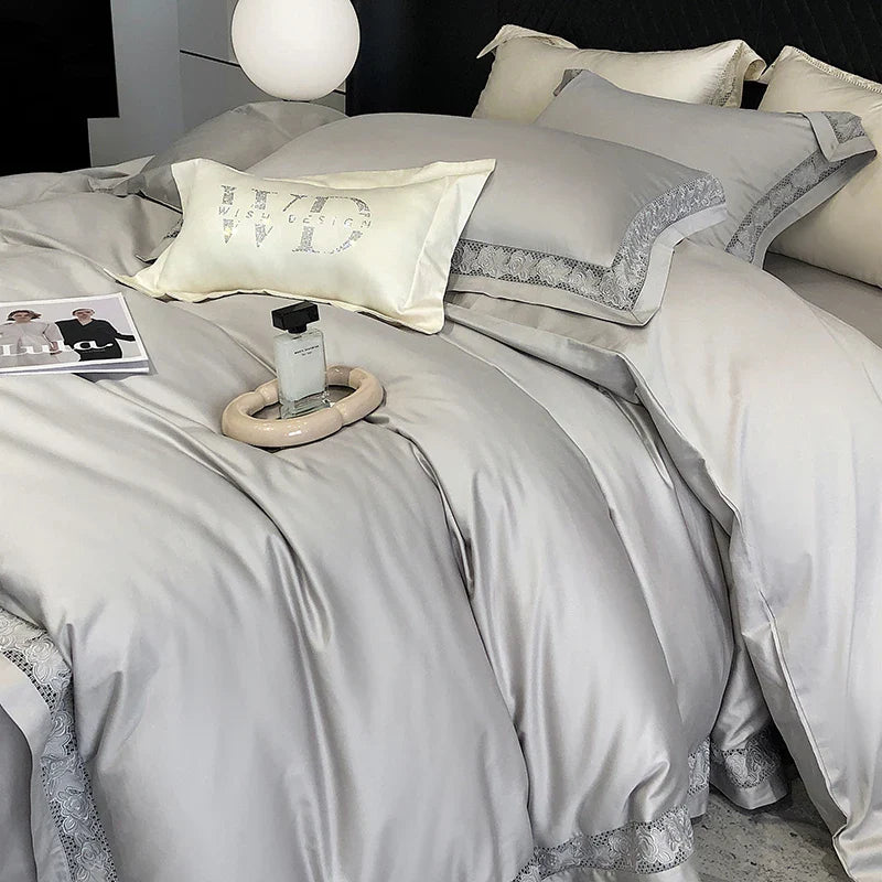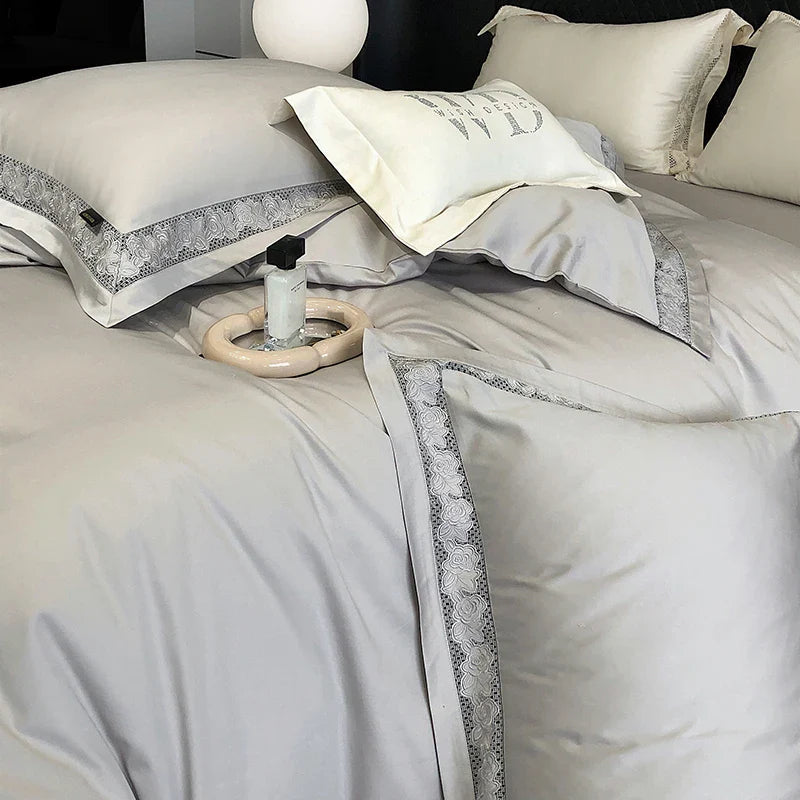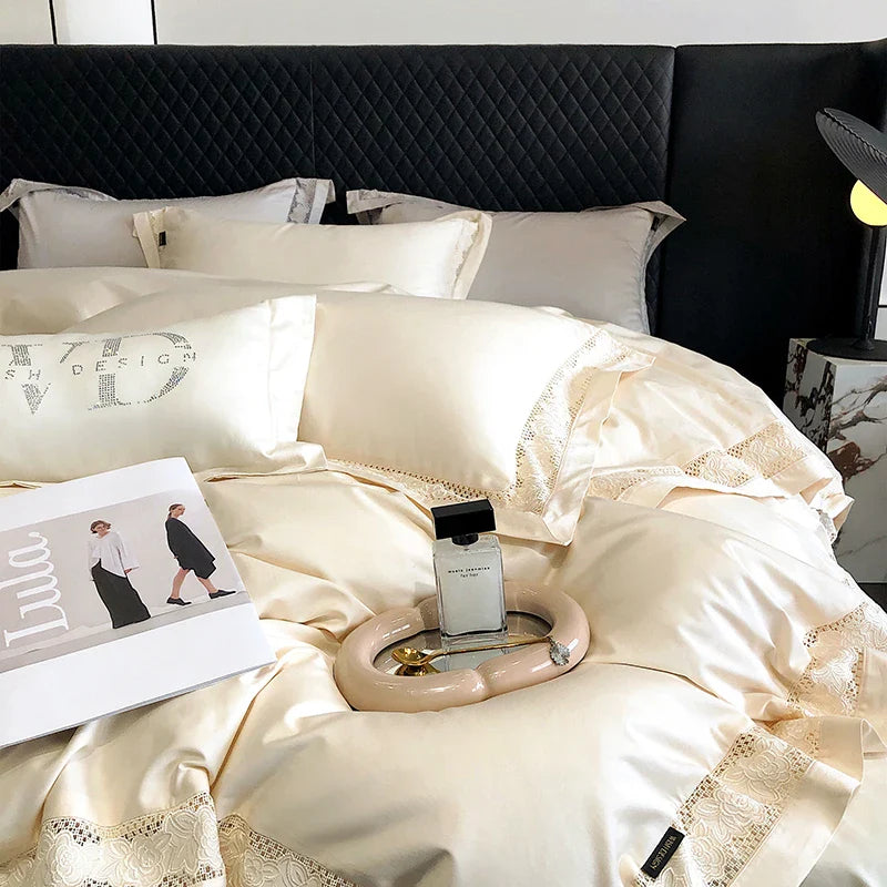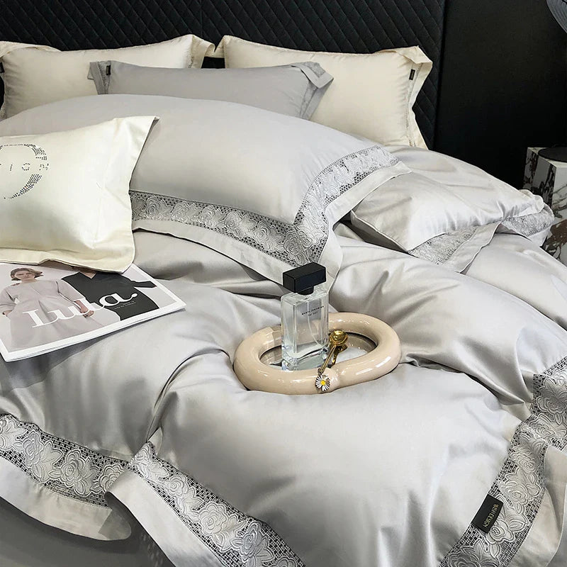 Introducing the Afralia™ Luxury Lace Embroidery 1000TC Egyptian Cotton Bedding Set, a masterpiece of comfort and elegance for your bedroom sanctuary.
