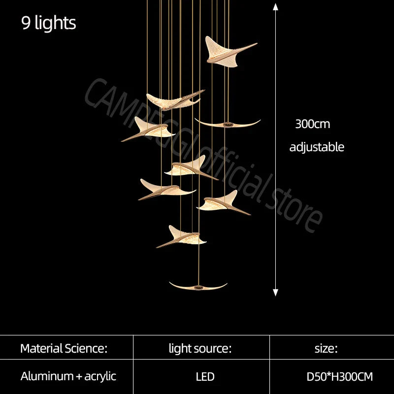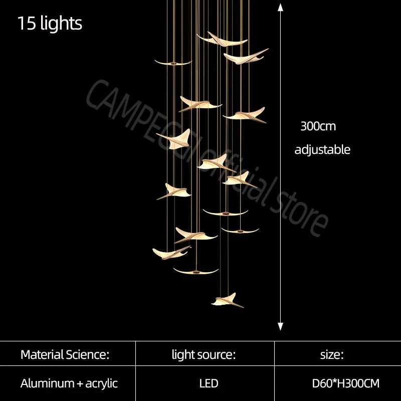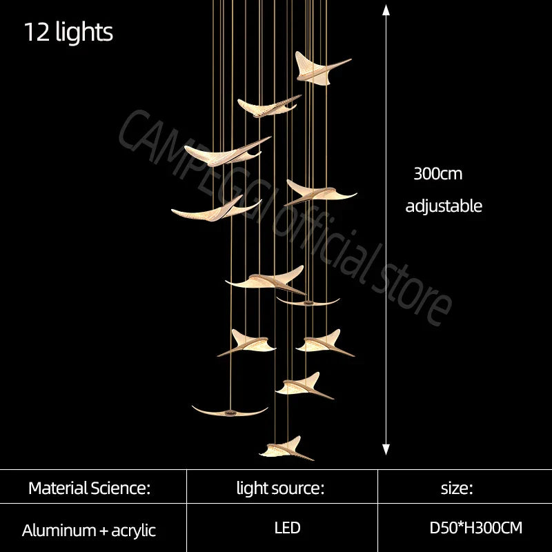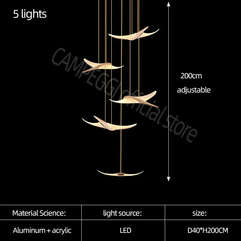 Crafted with high-quality aluminum material and expertly plated, the Afralia™ Chandelier features a unique design inspired by flying birds and seagulls, bringing a sense of grace and beauty to your surroundings. The sleek and minimalist silhouette of this pendant light creates a focal point that enhances the overall aesthetic of your space.