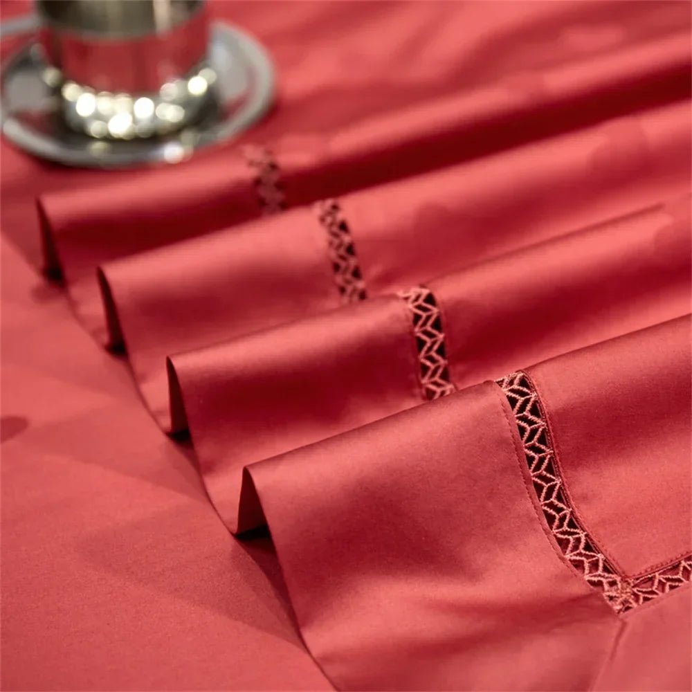 Afralia™ Luxury Nordic Red Egyptian Cotton Jacquard Embroidery Bedding Set