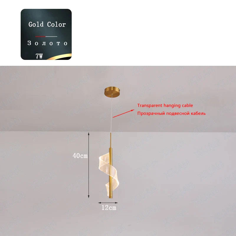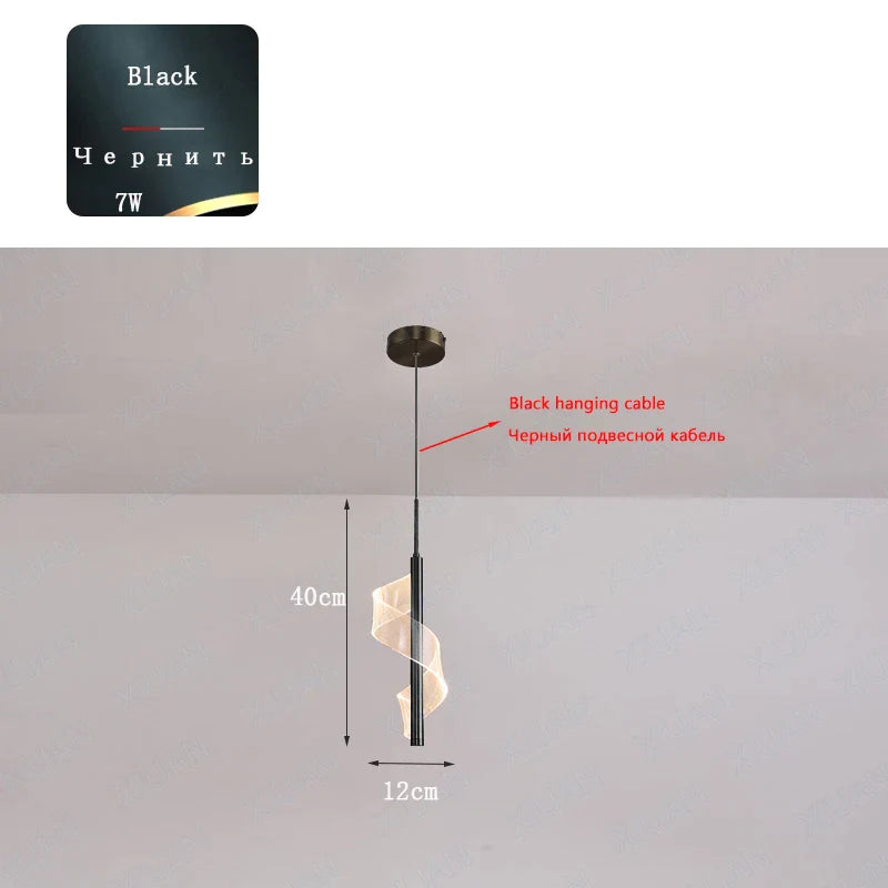 Afralia™ Luxury Spiral Pendant Lamp, 7W Modern Acrylic Lighting for Bedroom, Long Cable Sussex