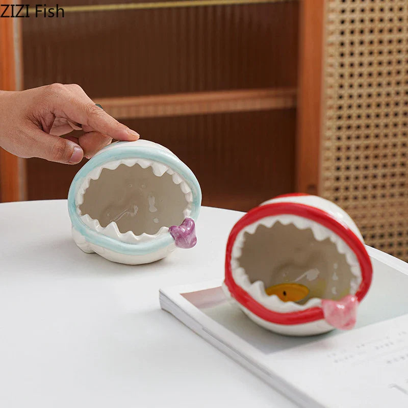 Afralia™ Man-eating Flower Ceramic Ashtray - Fun Office Desktop Ash Tray Gift
