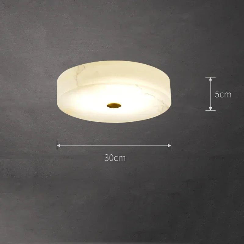 Constructed with premium marble and copper materials, this ceiling light exudes a sense of quality and durability. The sleek design, finished with a touch of gold, adds a touch of European flair to your living space. The marble ceiling light features a self-contained installation method, ensuring easy setup and hassle-free maintenance.