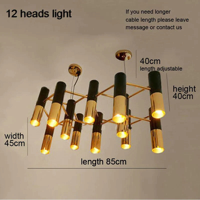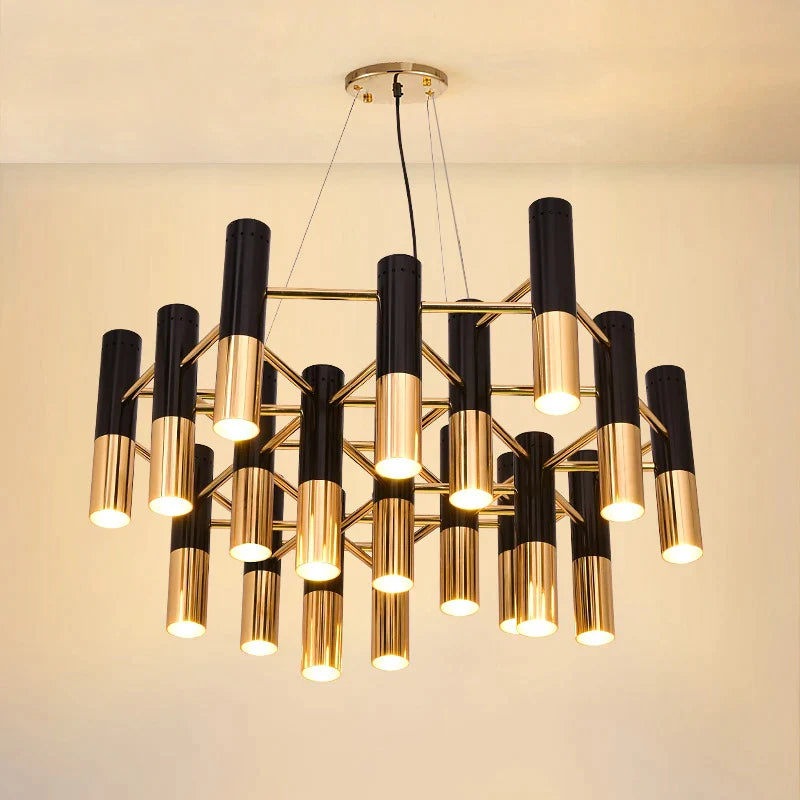 Afralia™ Metal Tube LED Chandelier, Black Gold Pipe Hanging Light