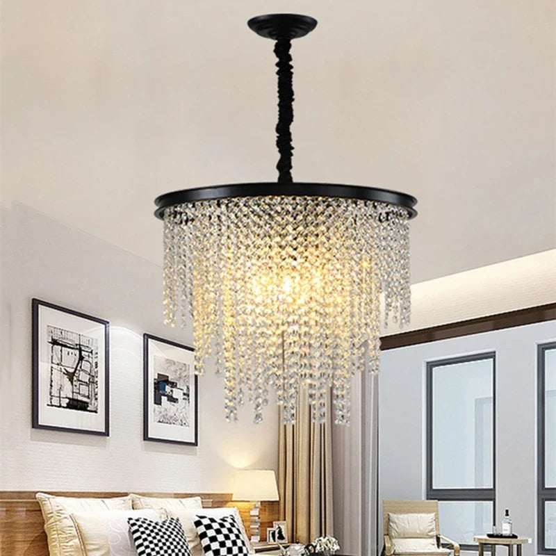 Elevate your space with the Afralia™ Modern Black Gold Chandelier with Crystal Lampshade & LED Lighting Fixtures. This exquisite chandelier brings a touch of contemporary elegance to any room, making it the perfect statement piece for your home décor.