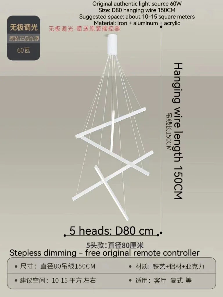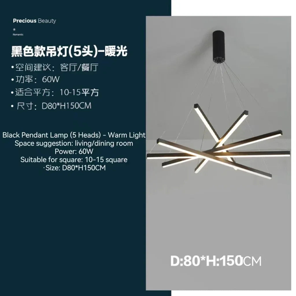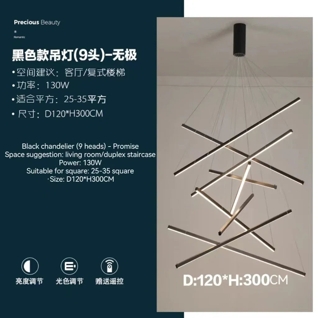 Afralia™ Modern Black Line Ceiling Chandelier for Living Room & Staircase