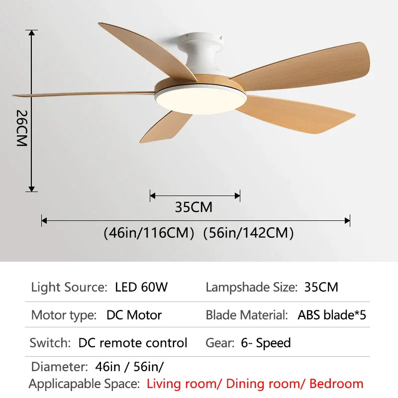 Equipped with LED lights, this ceiling fan provides both illumination and a refreshing breeze, creating a comfortable and inviting atmosphere. The powerful 60W motor ensures strong winds to keep you cool and comfortable, even on the hottest days.
