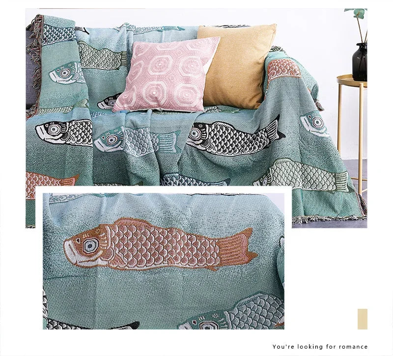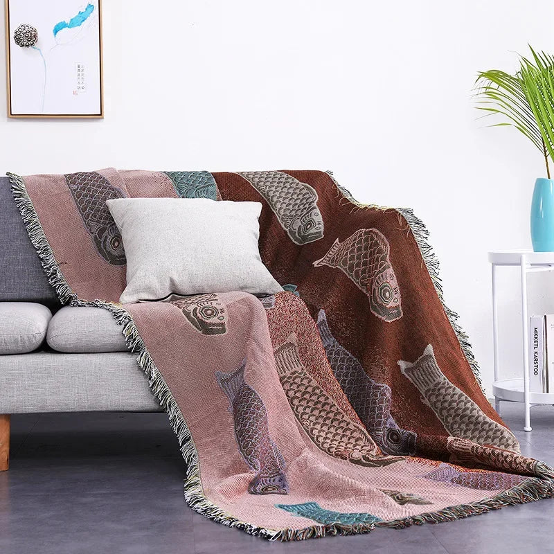 Introducing the Afralia™ Modern Carp Sofa Blanket – a versatile addition to your home decor collection. Crafted with a blend of premium-quality polyester and cotton, this Grade A thread blanket boasts durability and comfort like no other.