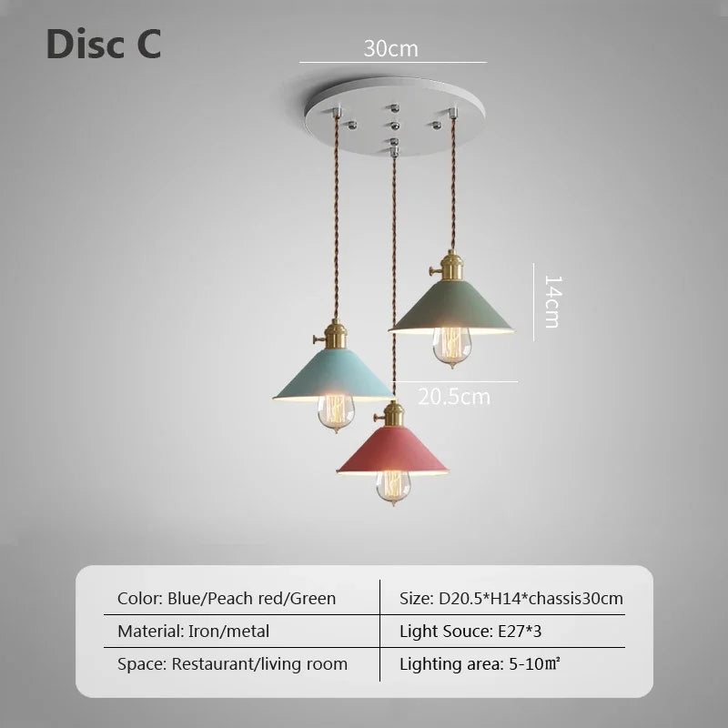 Crafted with meticulous attention to detail, this chandelier boasts a sleek metal construction finished in iron, ensuring durability and longevity. The lampshade is available in a variety of vibrant colors including white, green, gray, blue, yellow, and pink, allowing you to choose the perfect hue to complement your decor scheme.