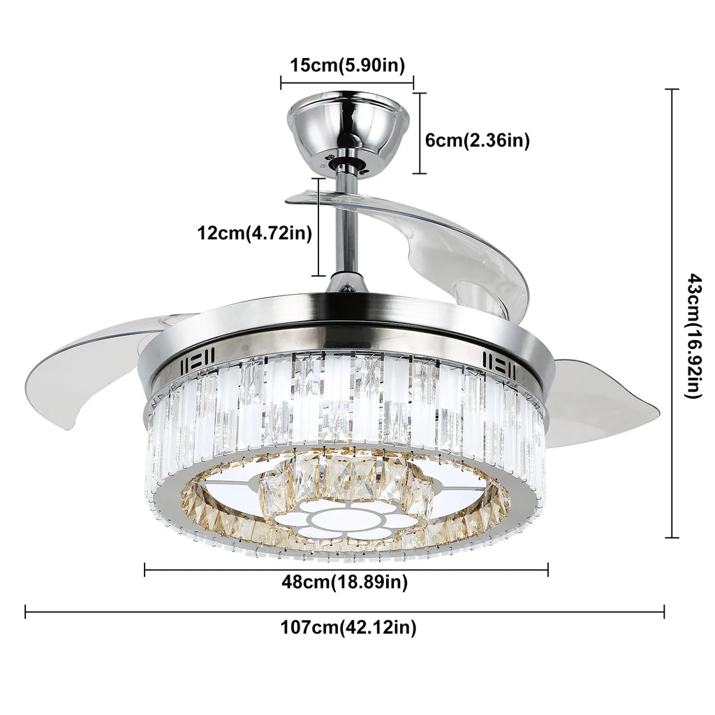 Introducing the Afralia™ Modern Crystal Chandelier Fan with Retractable Blades and Dimmable LED Light, a stunning addition to any contemporary space. This exquisite ceiling fan combines the elegance of crystal with the functionality of a fan, creating a unique and stylish lighting solution for your home.