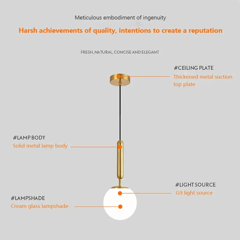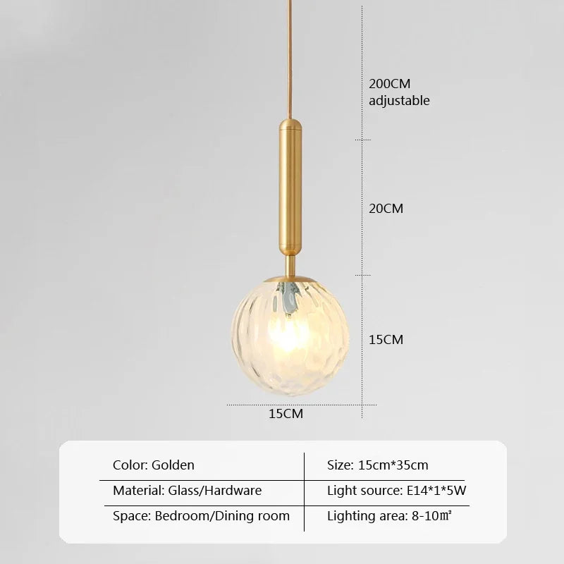 Featuring a stunning glass ball design and adorned with a lavish gold finish, this pendant lamp exudes modern elegance and timeless allure. Whether installed above a kitchen island, in the dining room, or as a bedside light, it instantly enhances the ambiance with its captivating presence.