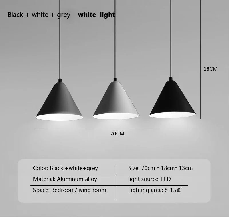 Featuring three lampshades in classic white, black, and grey hues, this pendant light offers versatility and the ability to customize the ambiance of your dining area to suit your preferences. The hot bending technique used in its construction adds a touch of artistic flair, enhancing its visual appeal.