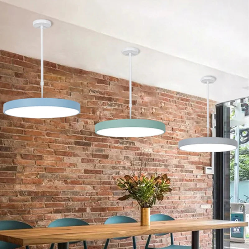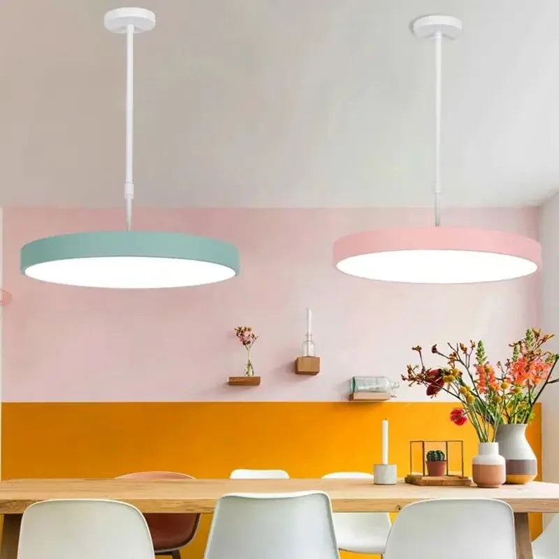 Crafted with precision and style, these pendant lights feature a circular design with vibrant macaron colors, including white, black, green, gray, blue, yellow, pink, and gold. The colorful lampshades inject personality and character into your space, creating a visually striking focal point that enhances the overall decor.
