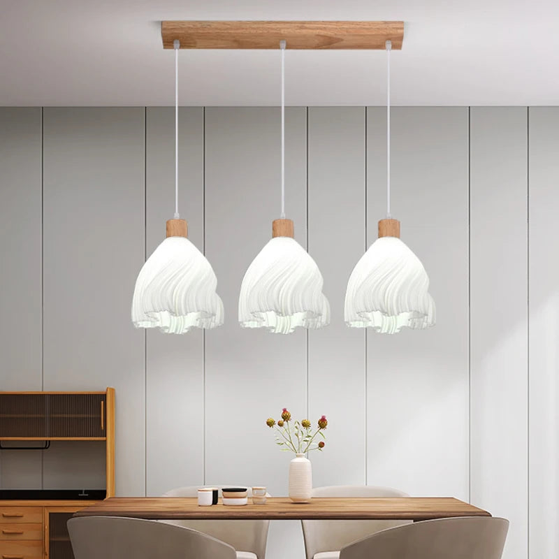 Crafted with precision and style in mind, this chandelier features a semicircular design that exudes modern sophistication. The sleek white lampshade complements any interior aesthetic, providing a clean and inviting ambiance.