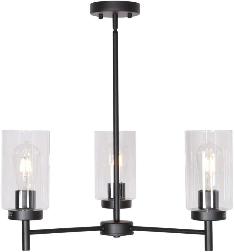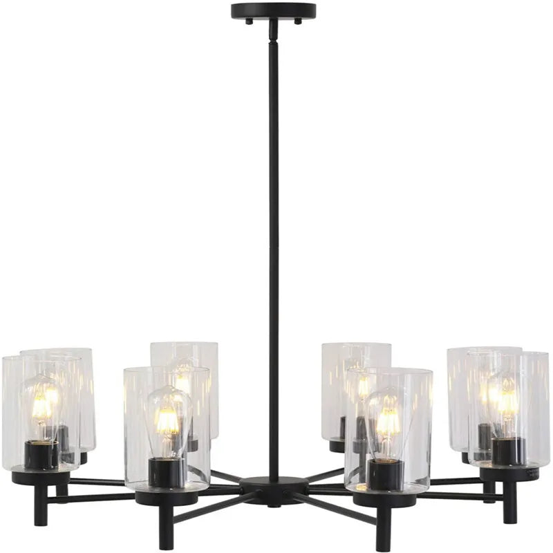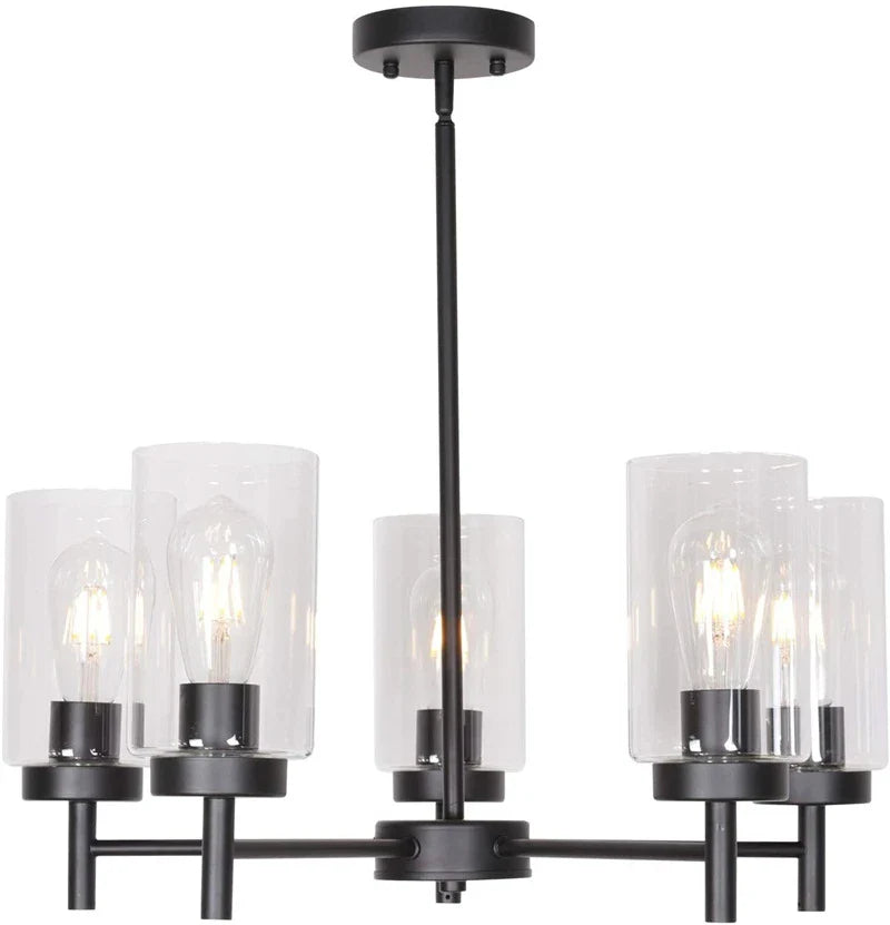 Constructed with high-quality iron material and finished with a sleek iron finish, this chandelier is durable and built to last. The E27 base type makes installation simple with a semiflush mount design for a seamless look.