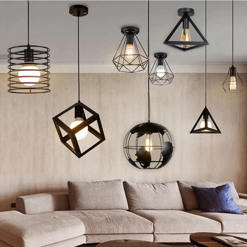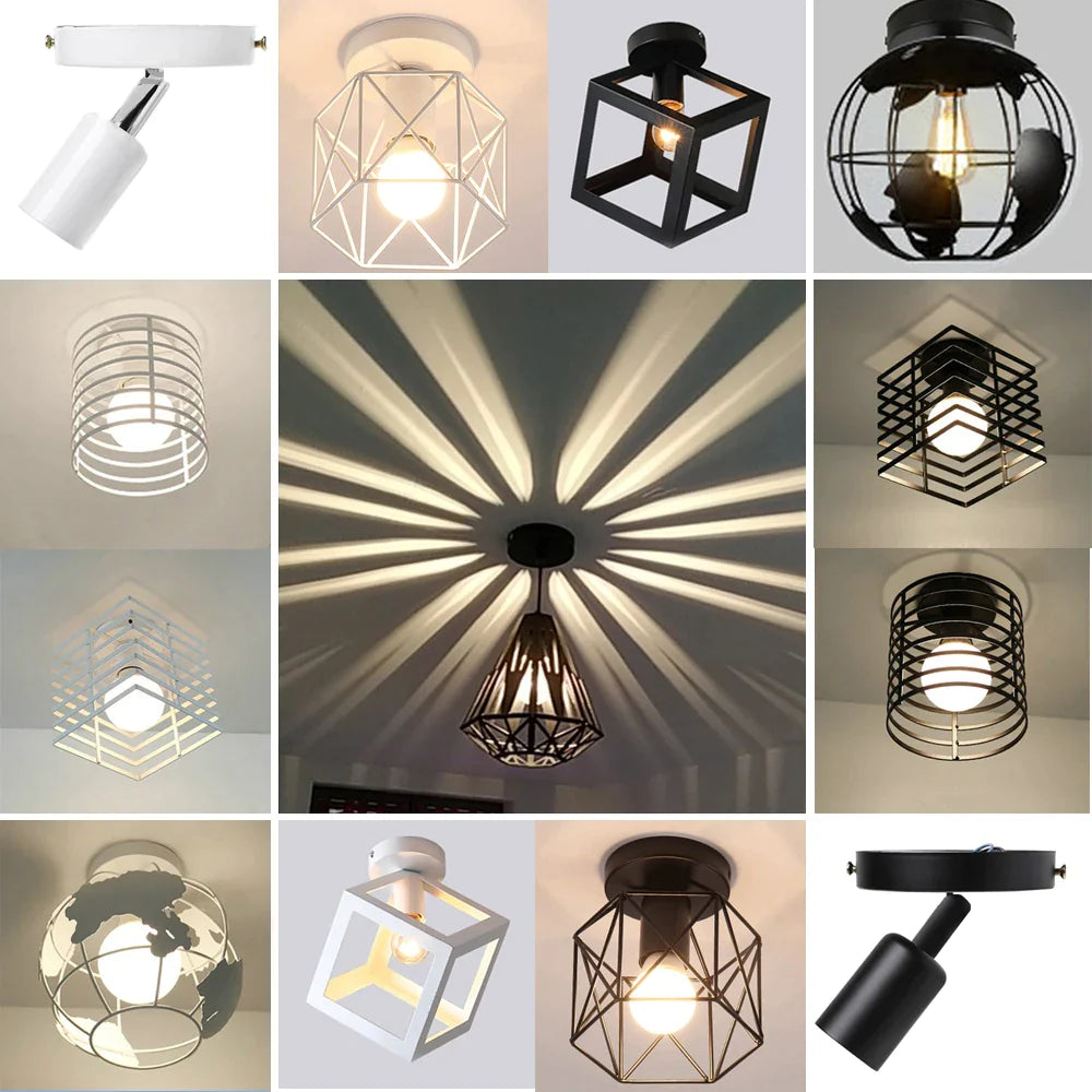 Afralia™ Modern Nordic Retro Iron Ceiling Light for Living Room, Bar, Black & White Cage Fixture
