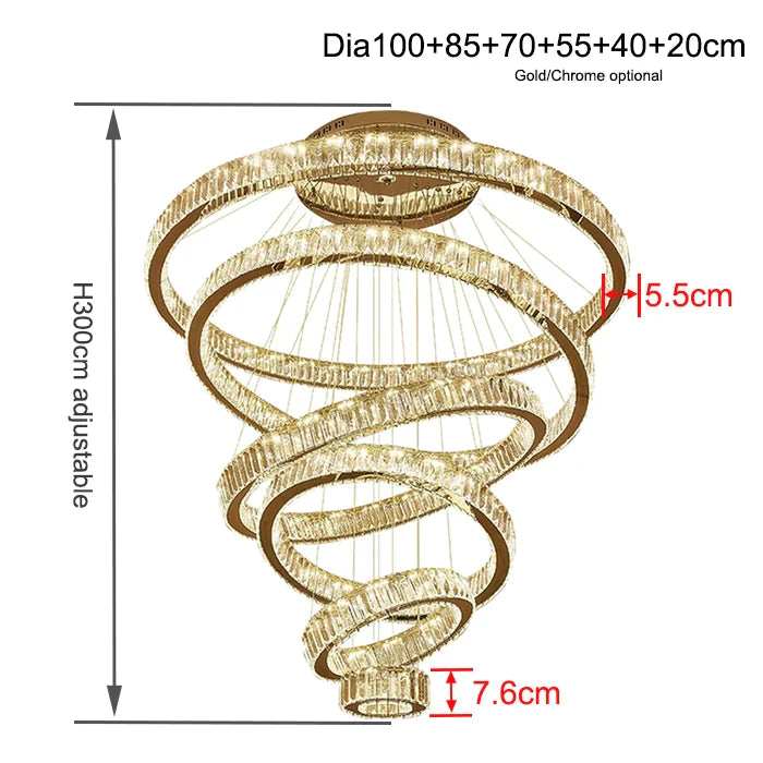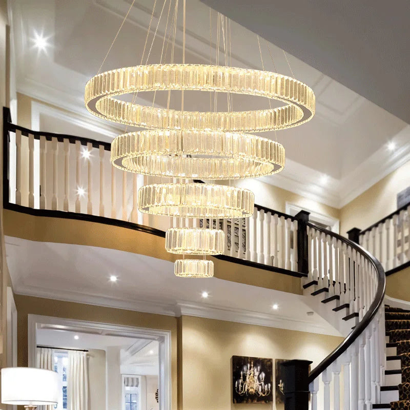 Introducing the Afralia™ Modern Rings Crystal Chandelier, a luxurious addition to elevate your space with its stunning design and impeccable craftsmanship. This exquisite chandelier is perfect for enhancing the ambiance of large staircases, living rooms, and lobbies, adding a touch of elegance and sophistication to any setting.