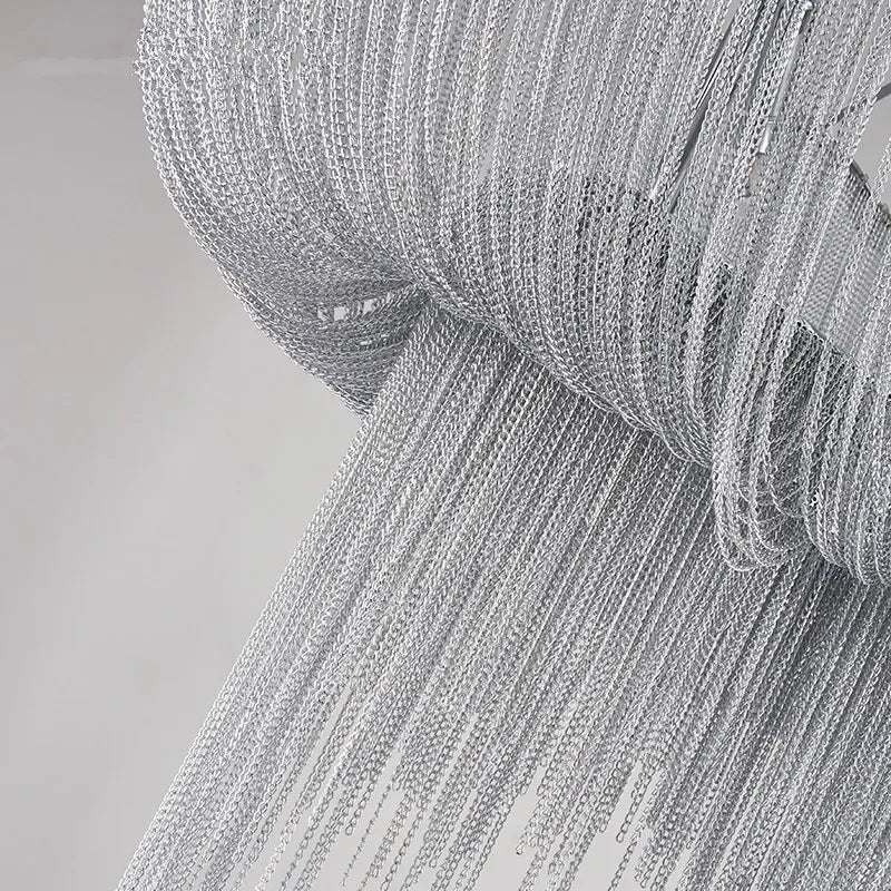 Afralia™ Modern Silver Aluminum Chain Chandelier Luxury Pendant for Hotel Restaurant Decor.