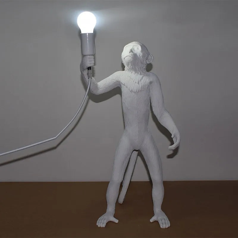 This Monkey Pendant Lamp exudes a traditional style with a vintage twist, perfect for those looking to make a statement in their home decor. The unique design features three monkey figures holding the light fixture, creating a whimsical and eye-catching piece.