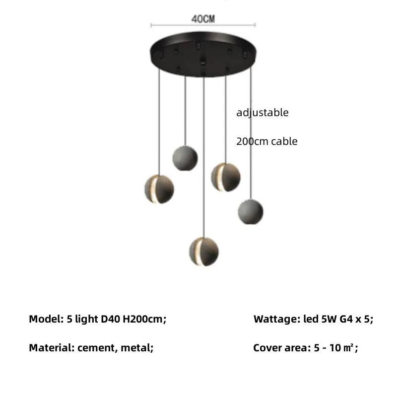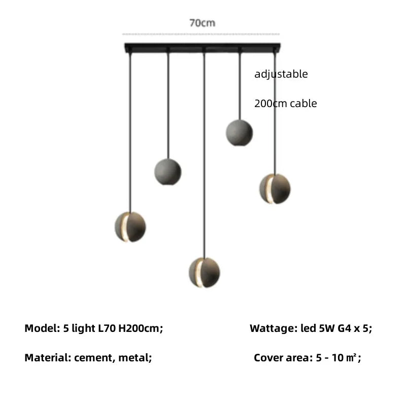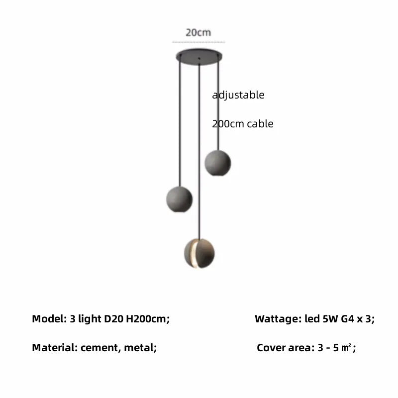 Afralia™ Moon Planet Cement Pendant Light: Modern Nordic Wabi Sabi Hanging Lamp for Dining Room