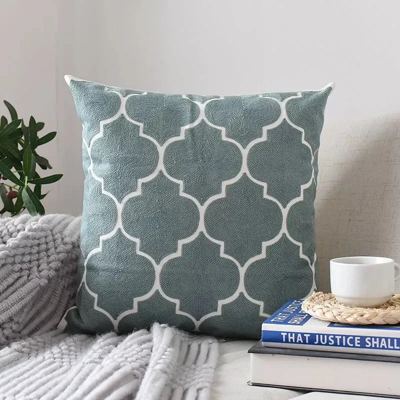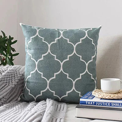 Introducing the Afralia™ Moroccan Embroidered Cushion Cover: Grey Black Blue Pillowcase, a luxurious addition to your home décor collection. Crafted with precision and style, this square pillow cover is designed to enhance the aesthetics of any space.