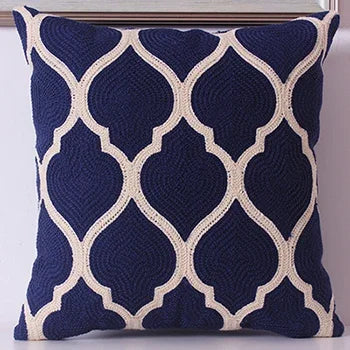 Afralia™ Moroccan Floral Navy Blue Embroidered Cushion Cover 45x45cm