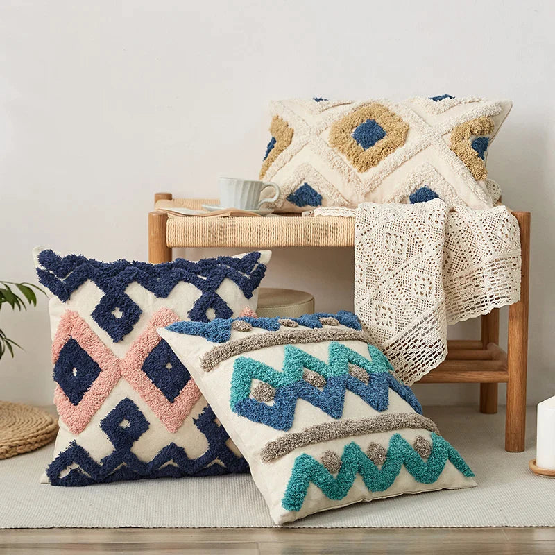 Elevate your living space with the exquisite craftsmanship and vibrant colors of the Afralia™ Moroccan Tufted Cushion Cover. Add a pop of color and texture to your surroundings while enjoying the comfort and beauty that these handmade pieces bring. Experience the perfect blend of style and quality with our exquisite cushion covers.