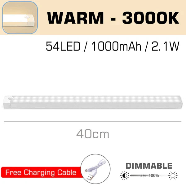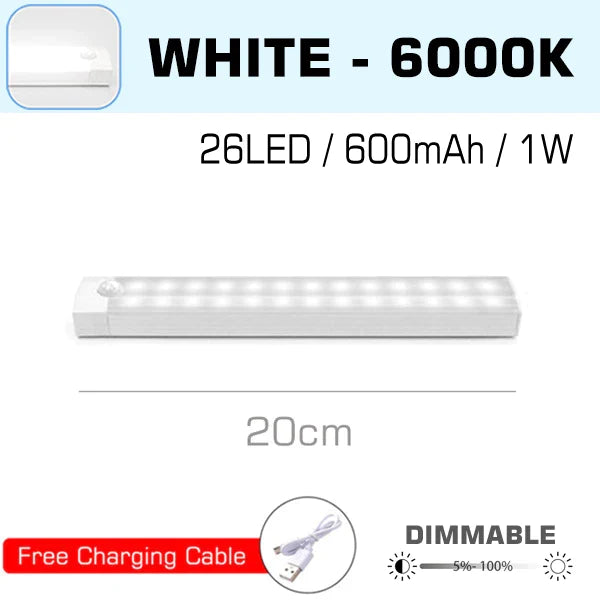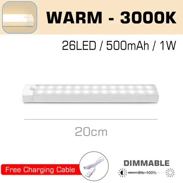 These LED night lights feature dimmable settings and double-row LED for added brightness. Perfect for use as a USB rechargeable LED night light, smart motion sensor light, LED stair light, kitchen under cabinet light, sensor closet light, wardrobe light, or sensor light with switch - the possibilities are endless.