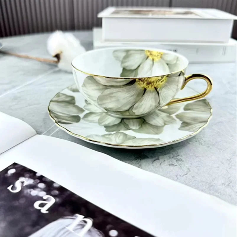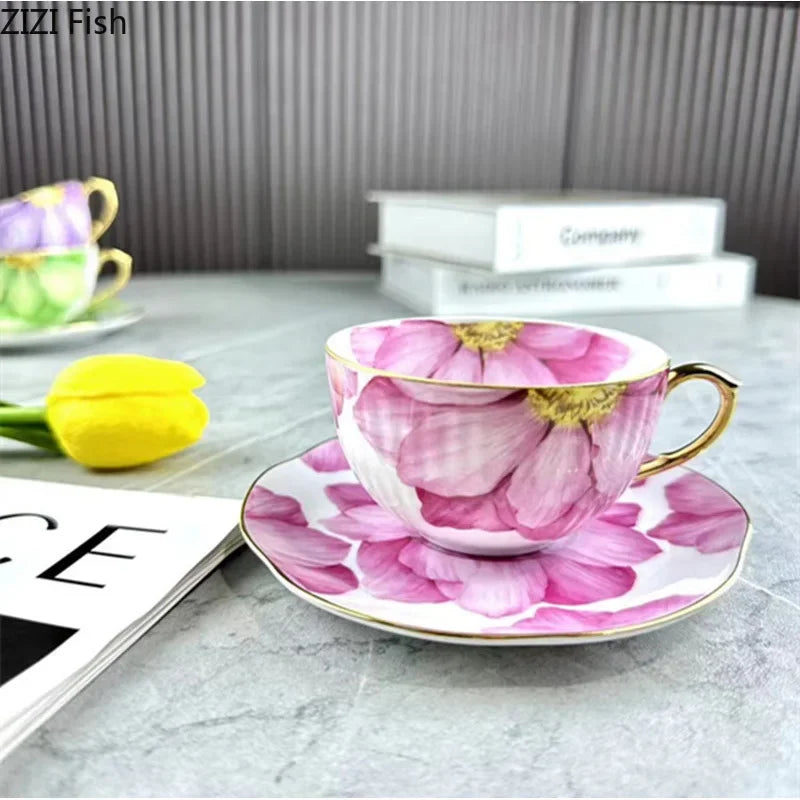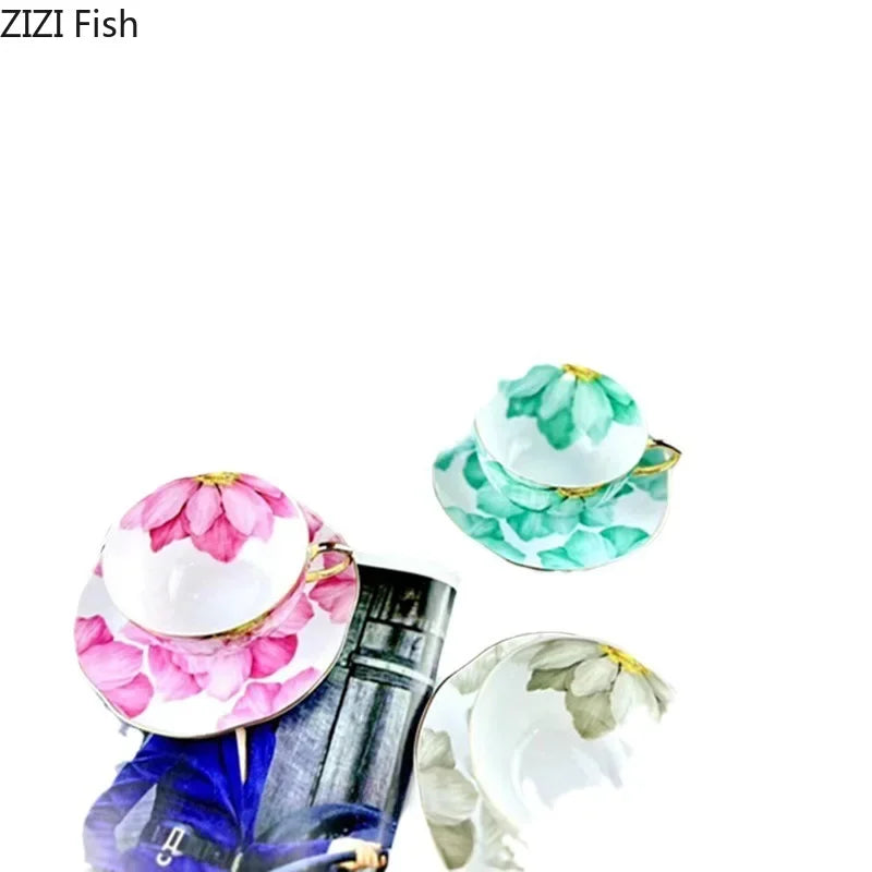 Afralia™ Multicolour Rose Flower Ceramic Cup&Saucer Set for Dining Table and Coffee